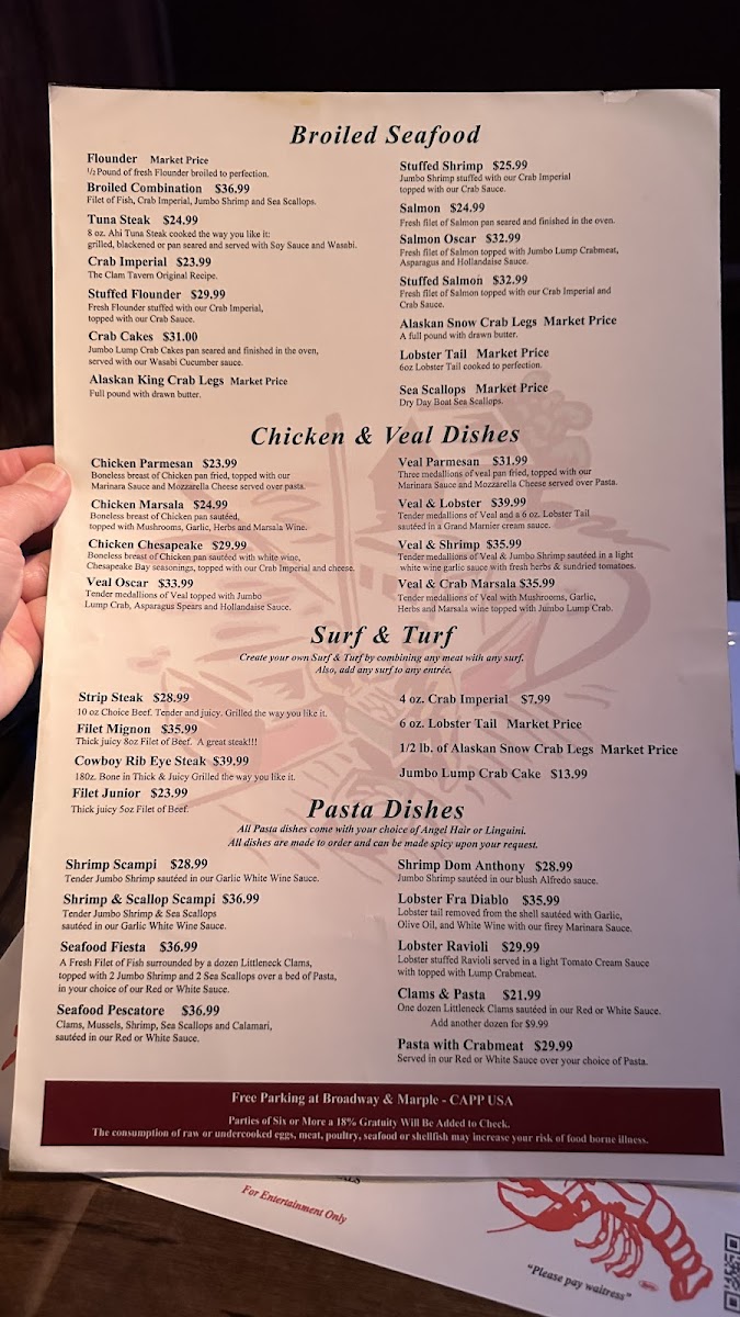 The menu at Clam Tavern offers a thoughtfully curated selection of seafood classics alongside hearty surf and turf options, all presented in a straightforward, approachable style. Whether you're stopping in for a casual lunch or settling in for a relaxed dinner, you’ll find dishes that balance comfort and freshness without fuss.